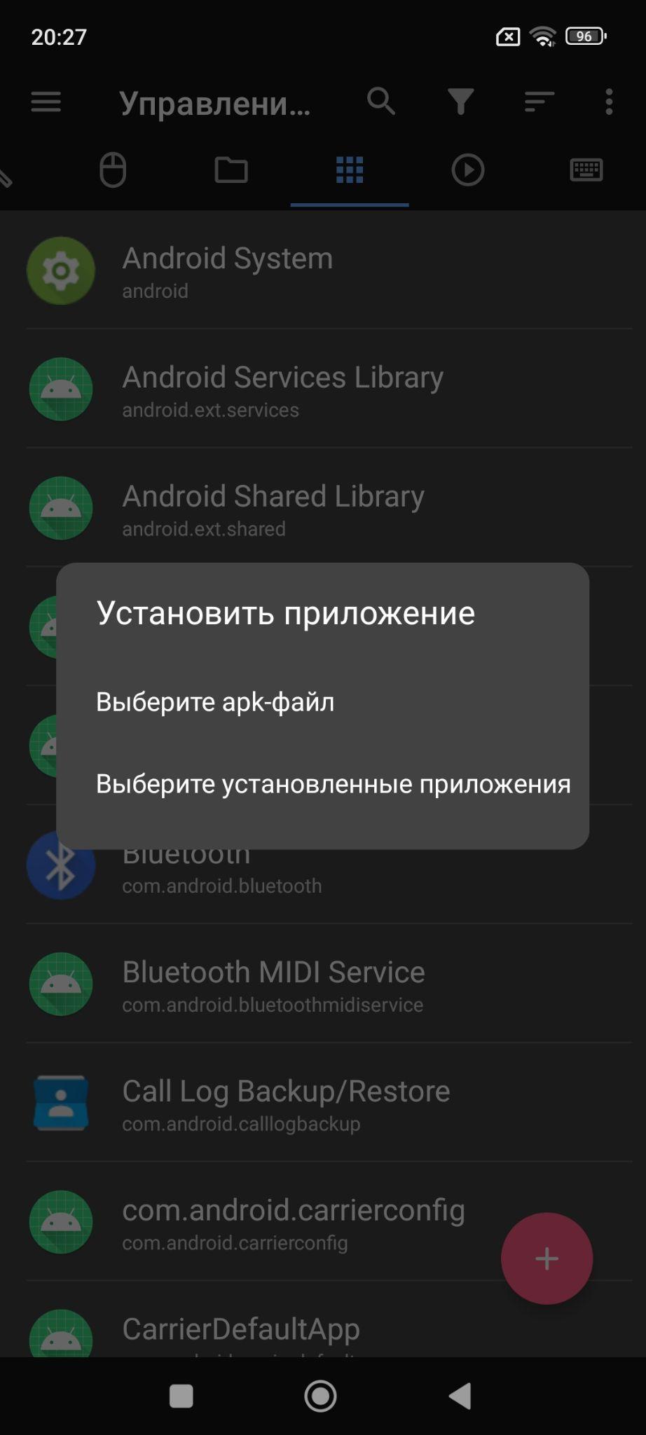5. В открывшемся окне выберите первый пункт “Выберите apk-файл”