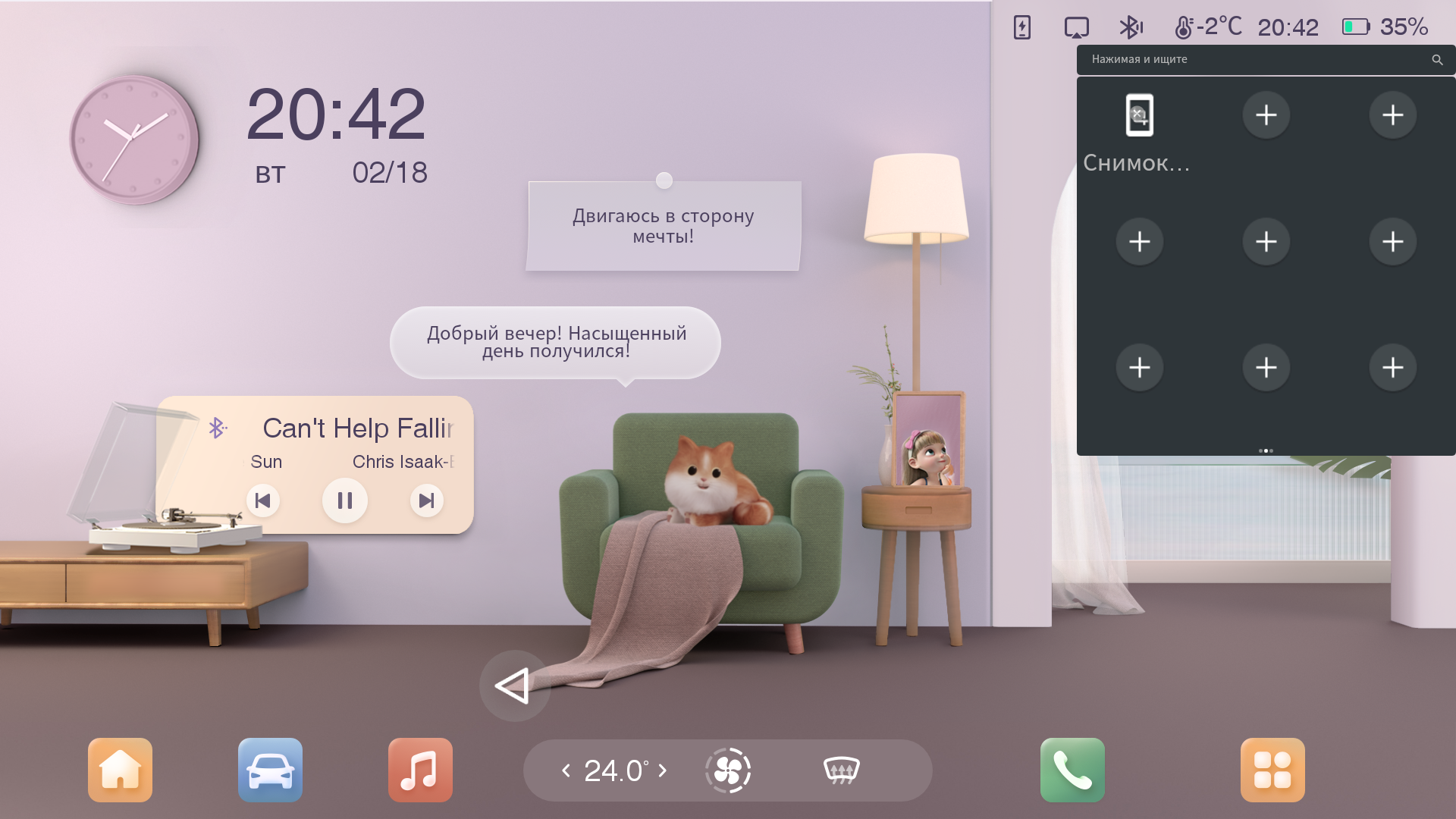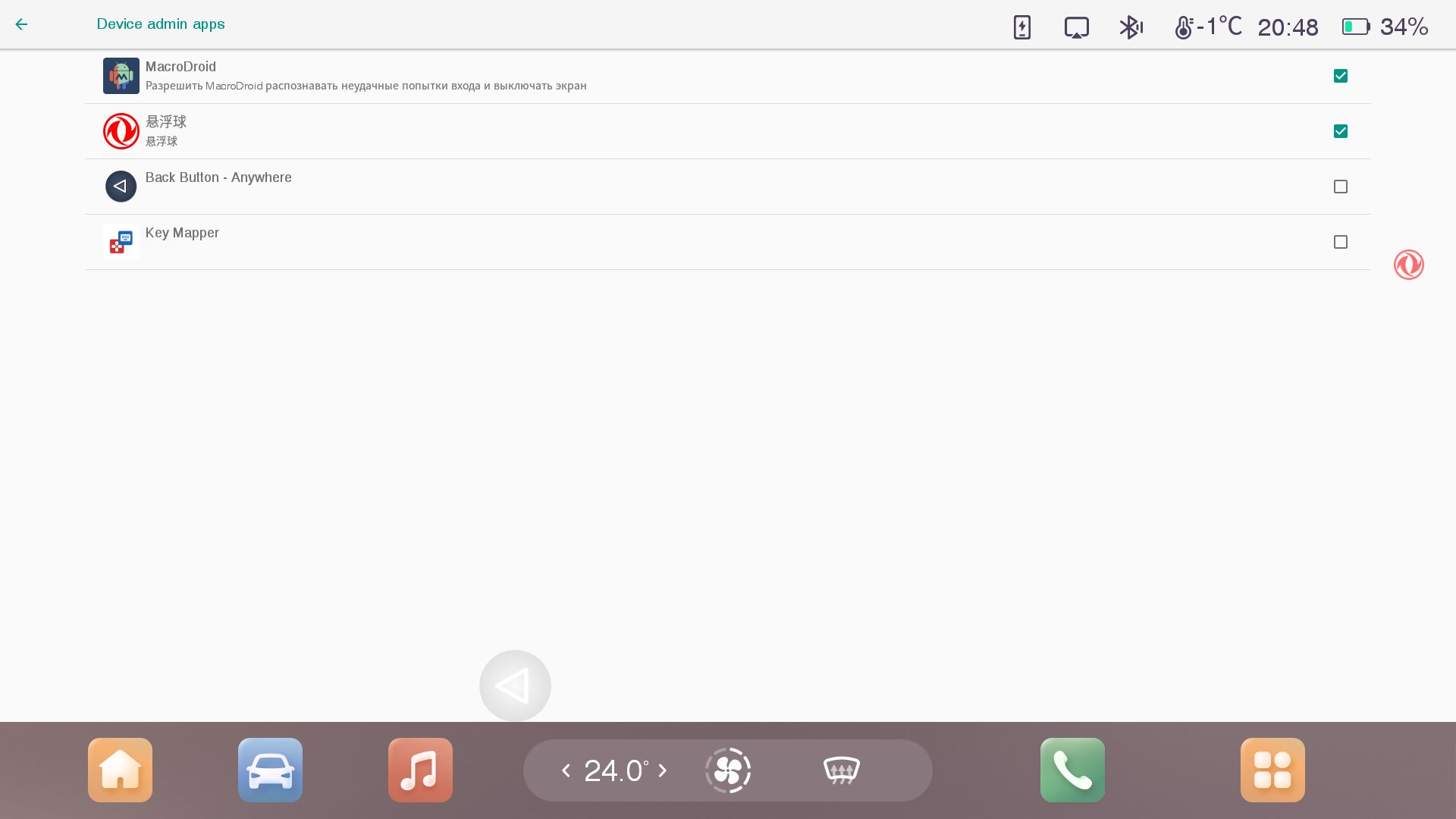 После того, как вы сделаете первичную настройку, иконка-шарик с лого Dongfeng появится на экране планшета и будет отображаться поверх всех приложений.