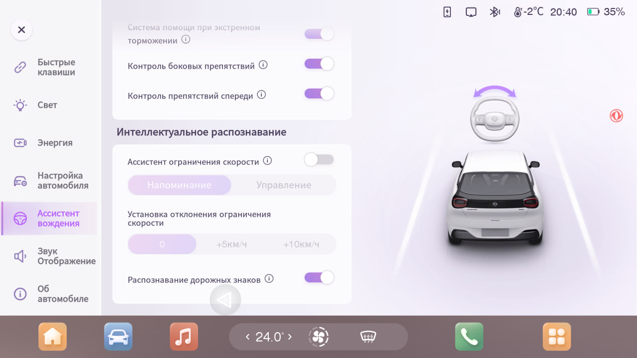 Включение этой опции добавит в настройки ГУ пункты, связанные с системой распознавание дорожных знаков: возможность предупреждения о дорожных знаках и возможность ограничения скорости в зависимости от знака.