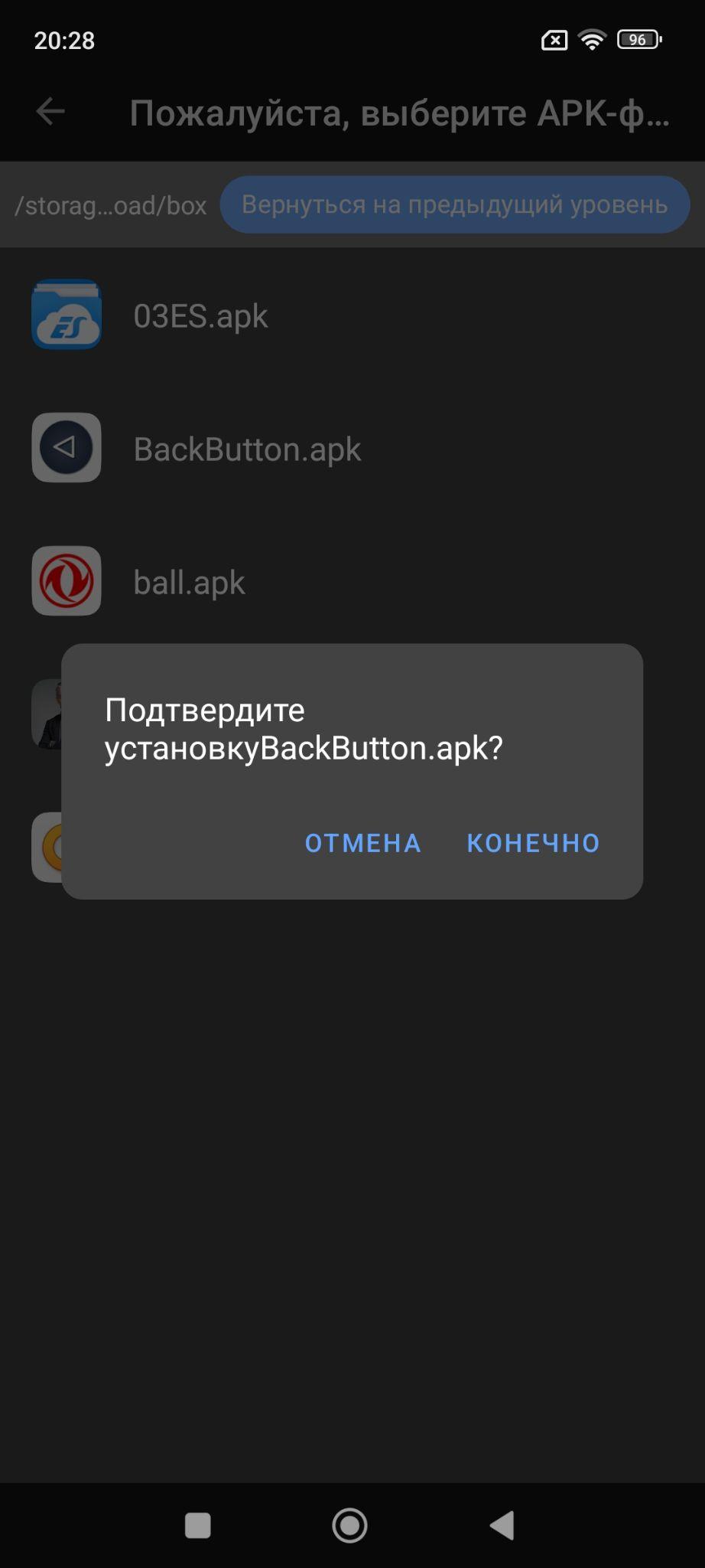 5. В открывшемся окне выберите первый пункт “Выберите apk-файл”